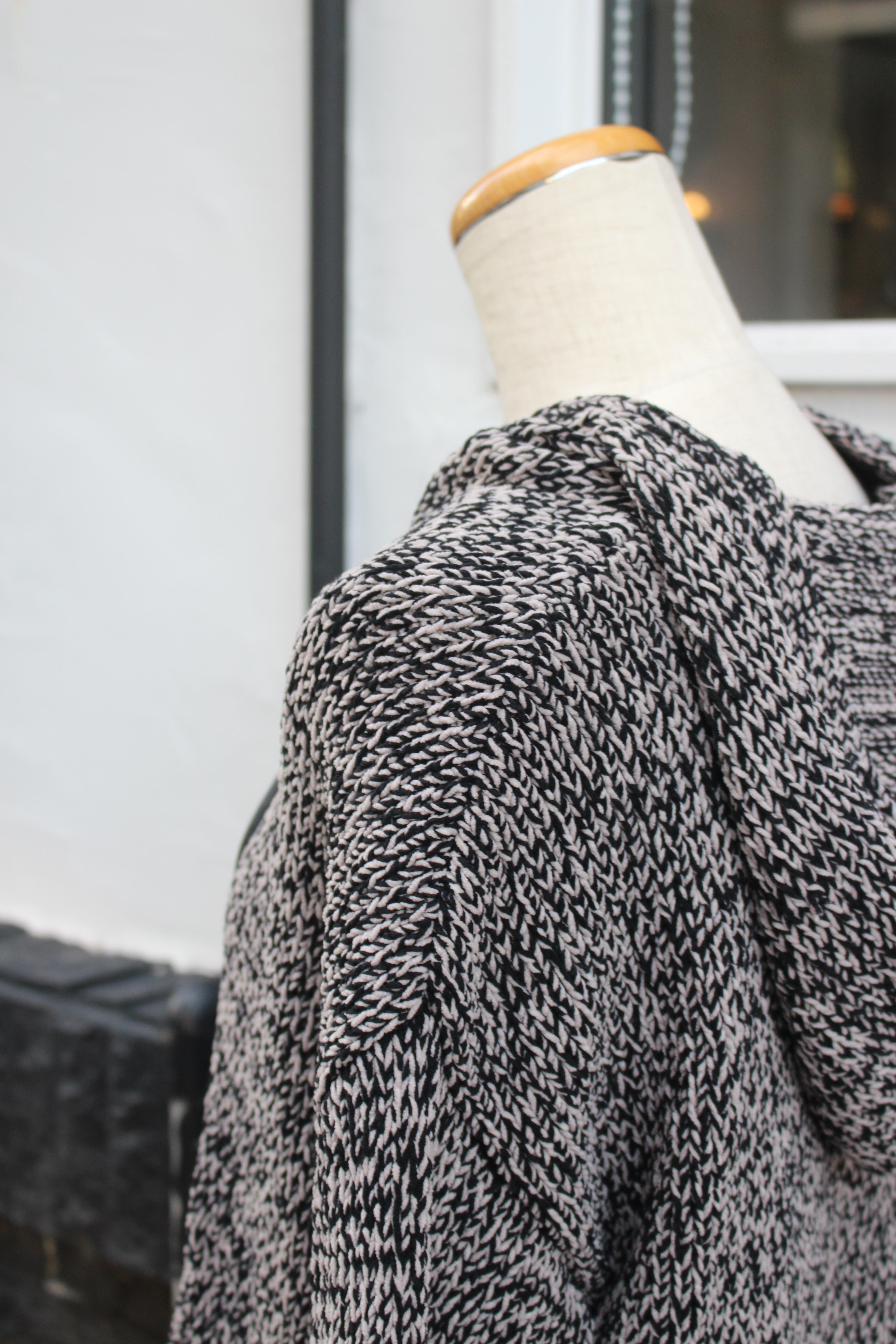 胡麻柄による立体的なデザインのニットパーカー。