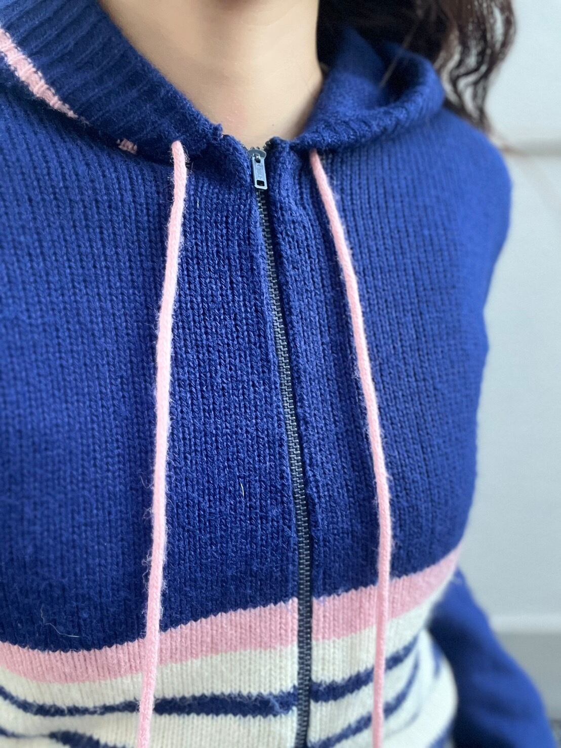 ニットとパーカーの珍しい組み合わせに加え、カラーリングも中々。お探しの方も多いはず。