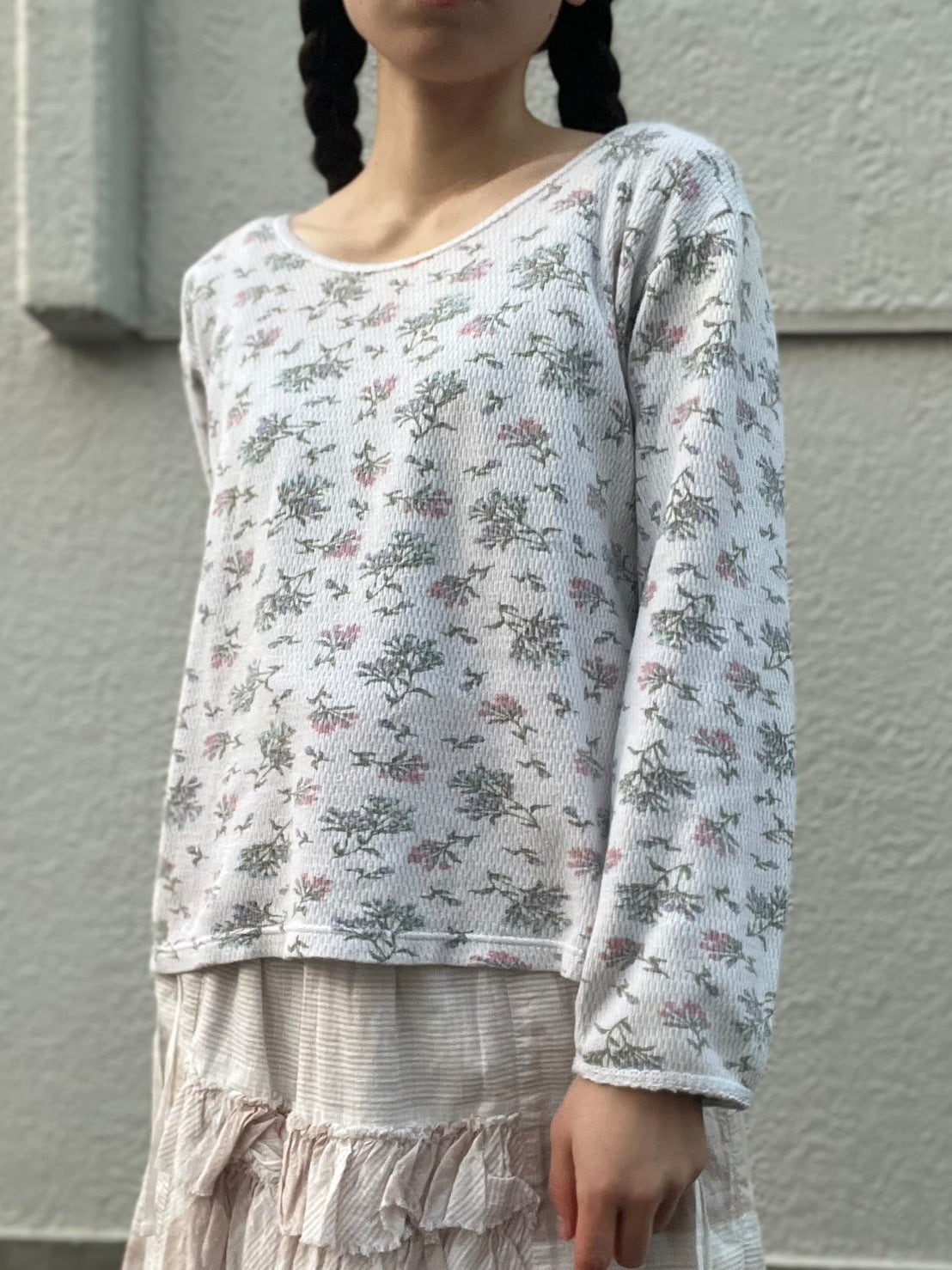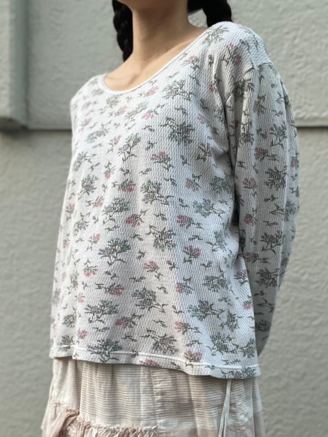 春爛漫、小花柄のカットソー。