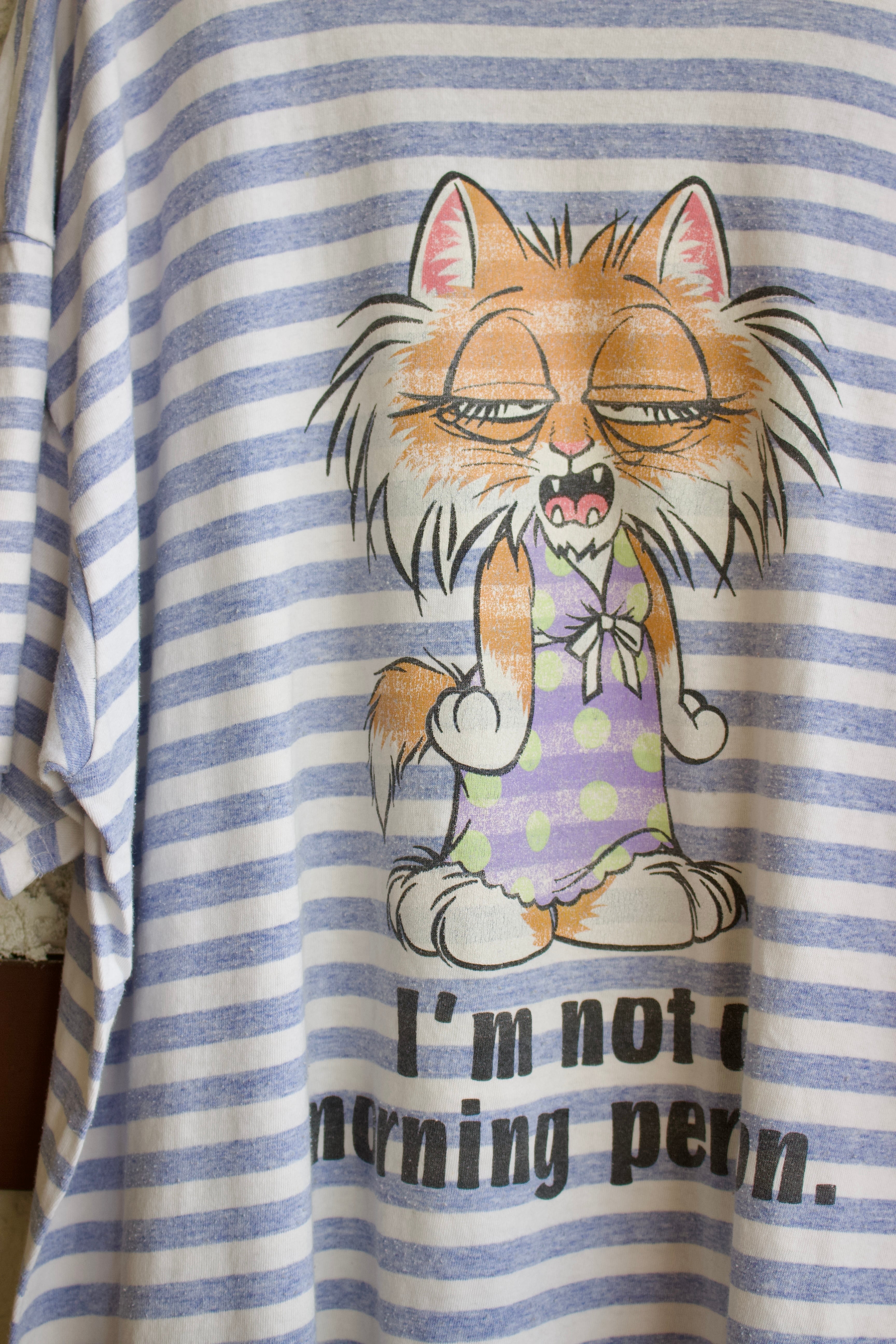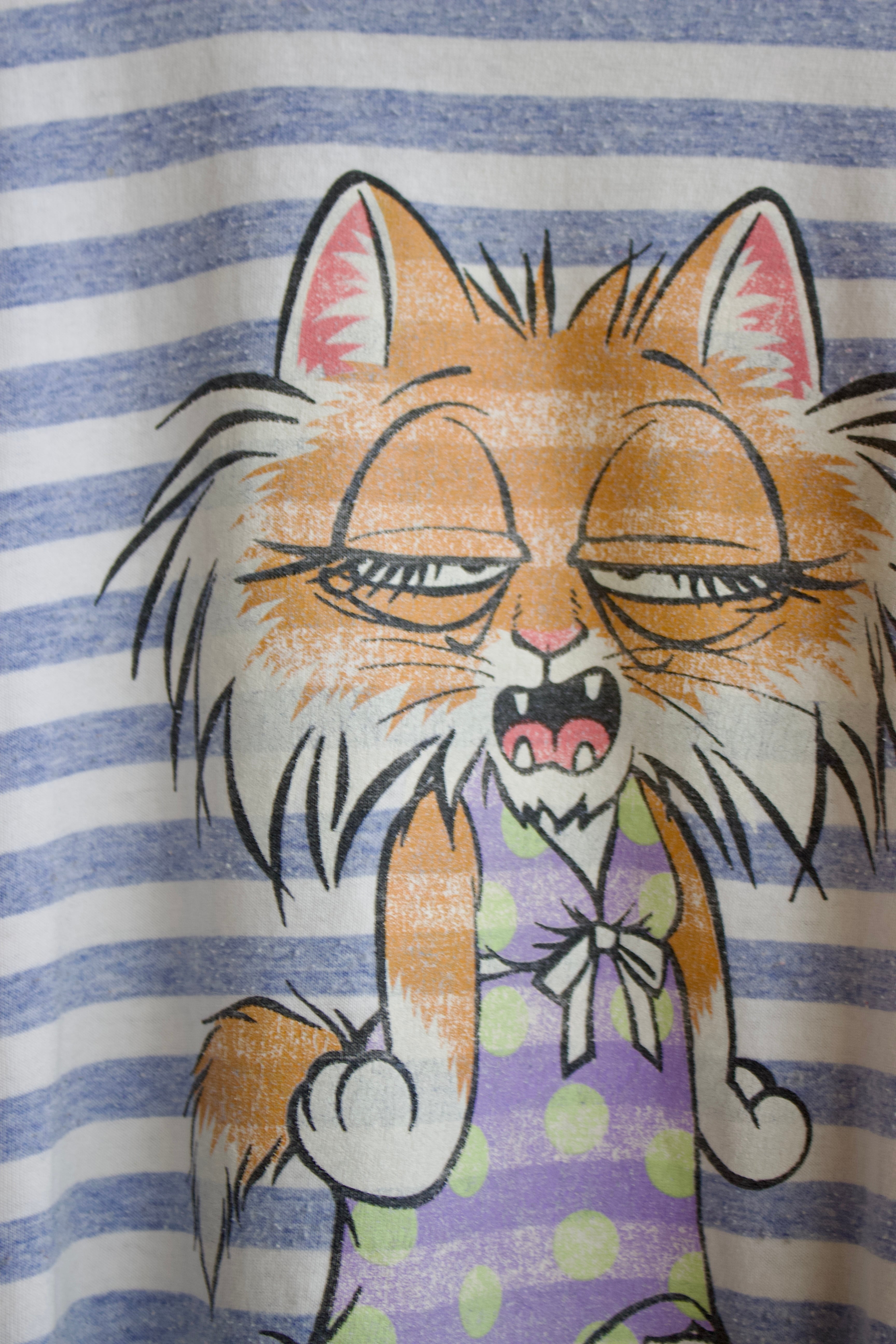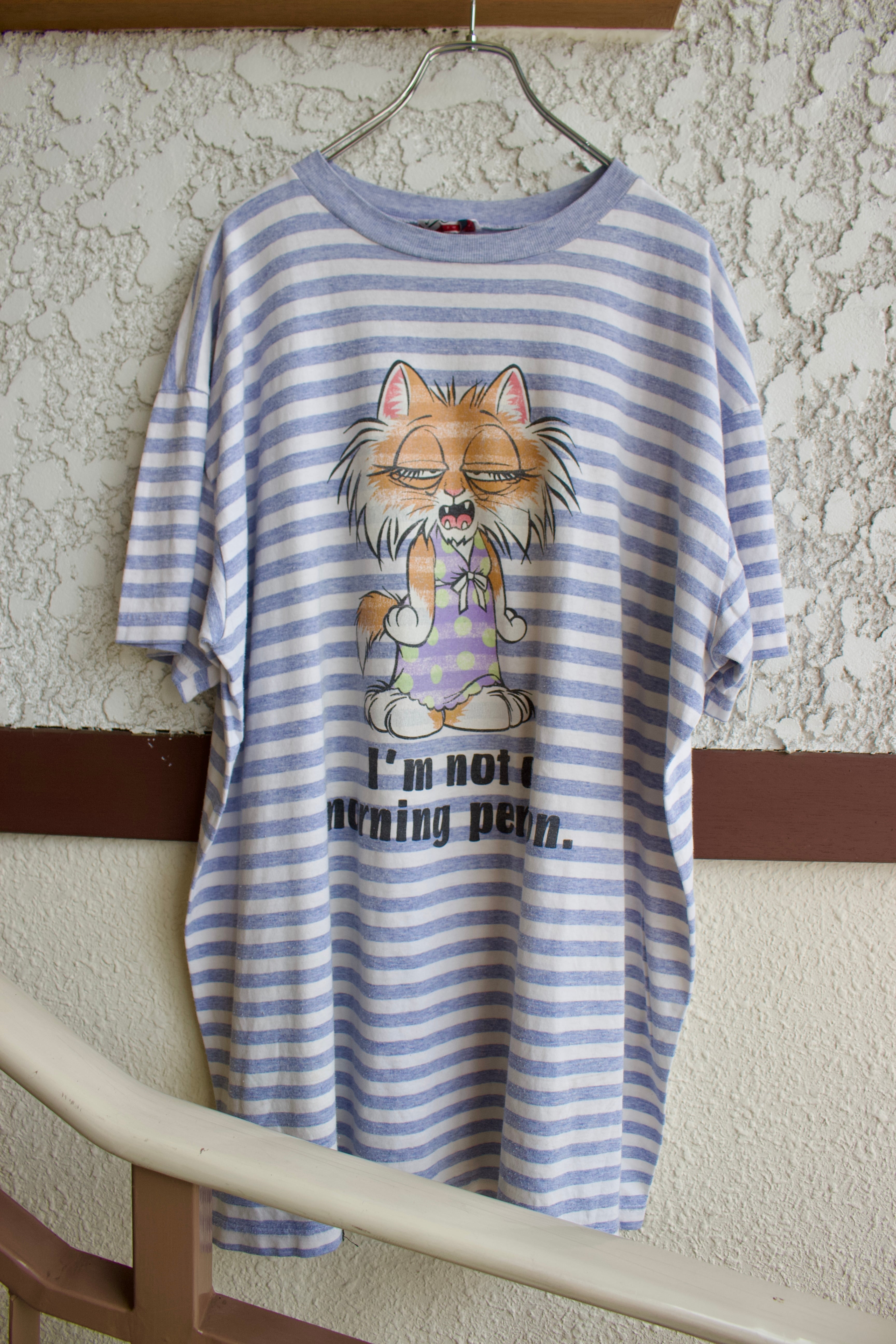 90s "寝ぼけ猫" Print Big Size T-shirt
