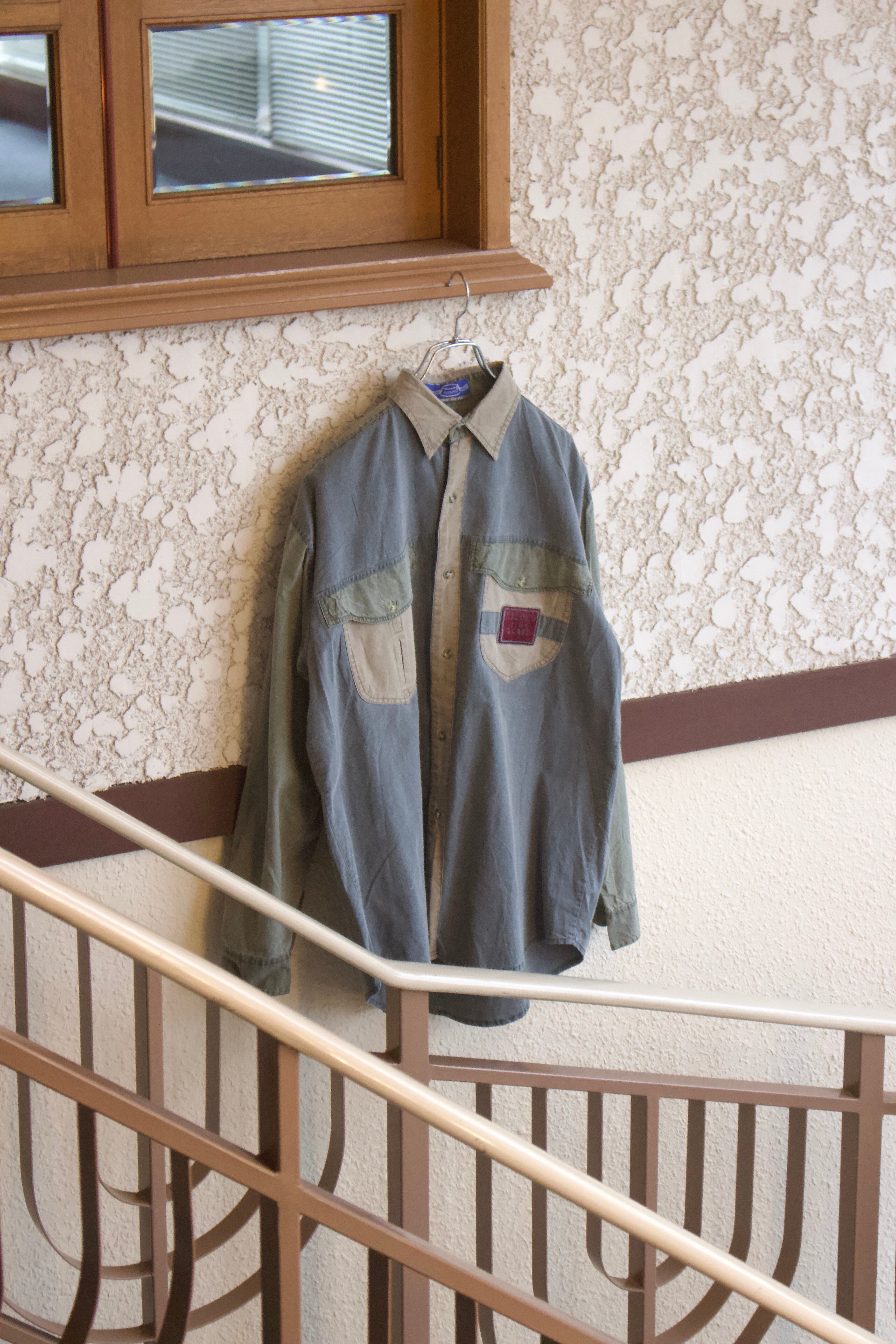 渋めな配色のマルチカラーシャツ。